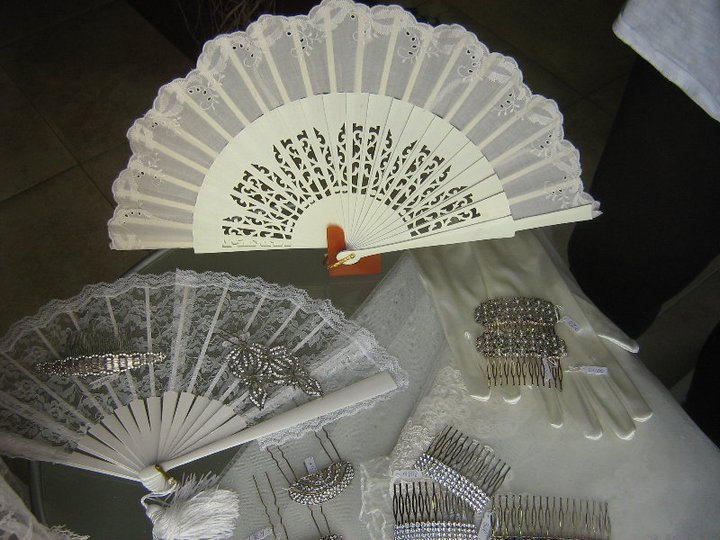 Audrey te ofrece una gran variedad de complementos para novia y fiesta, entre los que se encuentran: zapatos, tocados y pamelas a medida, abanicos, alfileres, invitaciones, peinas, broches, tiaras, pendientes y un amplio surtido de velos y mantillas con opción a alquiler, entre otros.