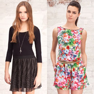 Las «estradivas» nos traen un vestido y un mono que descansan por encima de la cadera, una versión sobria y otra alegre invadida por un estampado muy de tendencia. El vestido es más favorecedor en lo que a silueta respecta y por lo contrario con el mono debemos de tener cuidado, ya que es un estampado de tamaño medio y puede darnos más volumen del que deseamos.