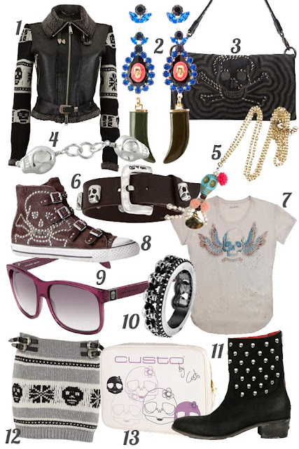 Cuero y Calaveras: prendas con tonos bivrantes, apliques renovados, camisas en gasa estampada en calaveras y accesorios en cuero o con motivos tétricos en diferentes versiones y colores.
