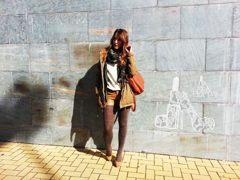 qué guapa estás ! me encanta el resultado del look, combinan a la perfección la parka, la camisa kaki, los shorts de cuero… !! genial ! un besito